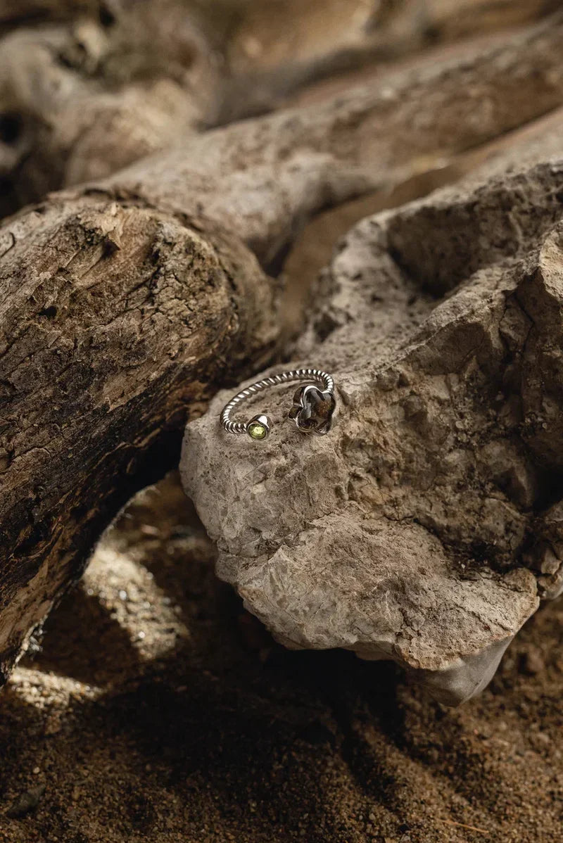 Sericho meteorite & Moldavite ring, combining extraterrestrial charm with earthly elegance.